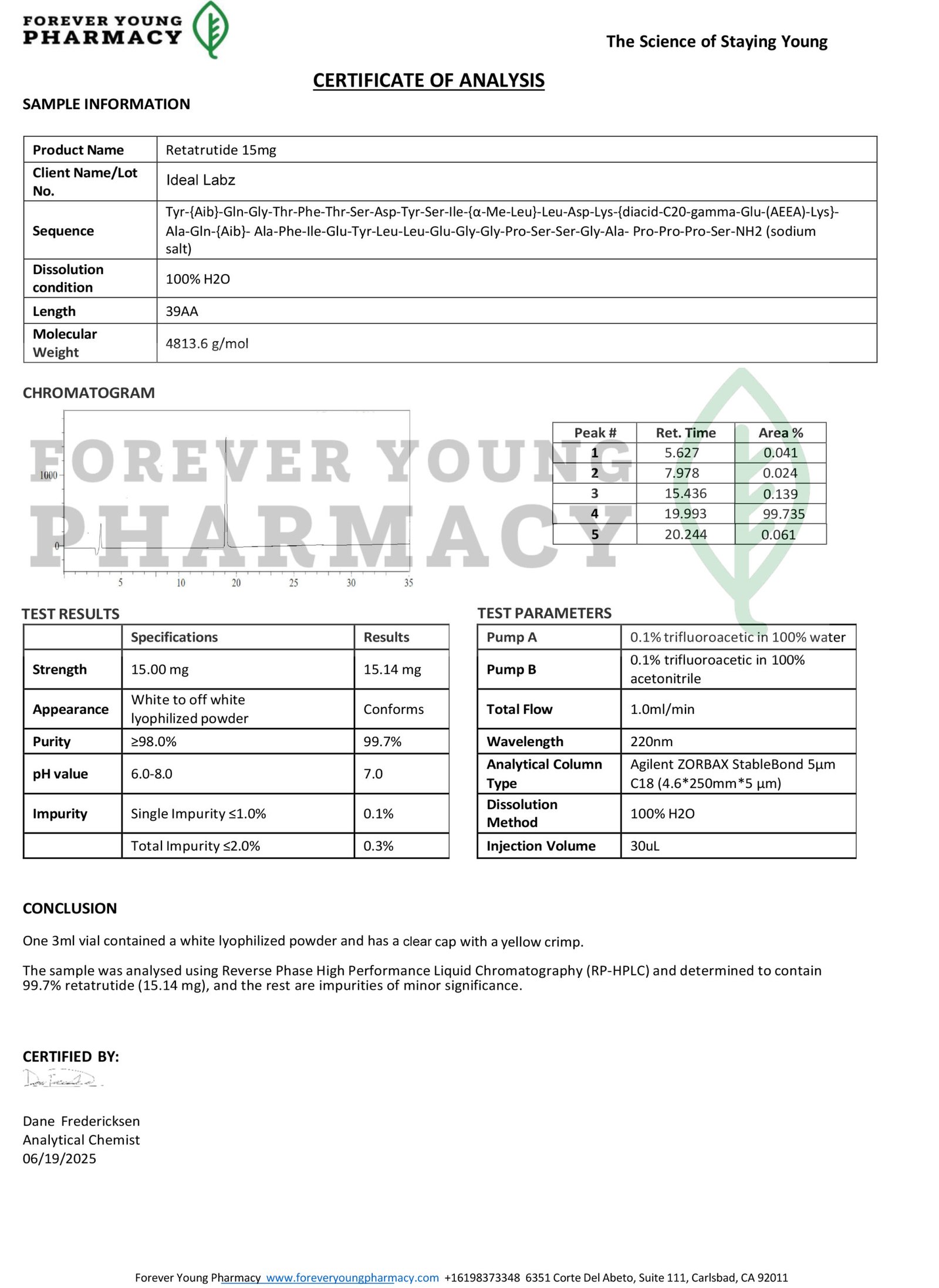 Ideal Labz offers this product exclusively for research applications in the form of a lyophilized (freeze-dried) powder. Please be aware that, in compliance with legal regulations, we are not authorized to provide dosing or reconstitution instructions.